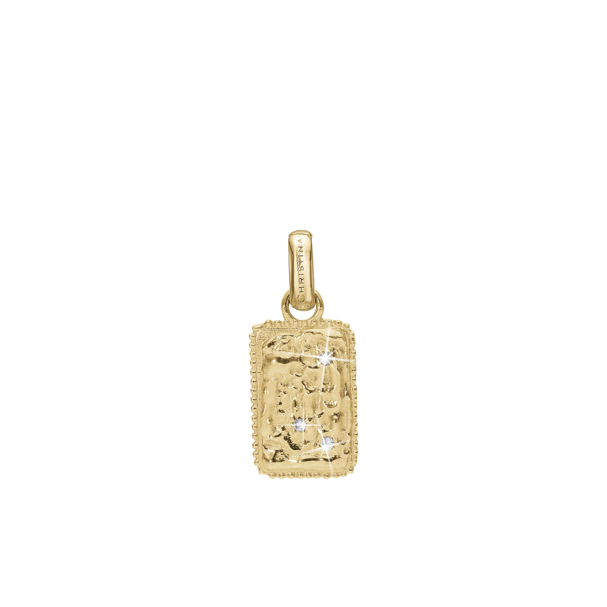 Antique square Earring Pendant - Polished Gold Plated Sterling Silver with 3 white Cubic Zirkonia
