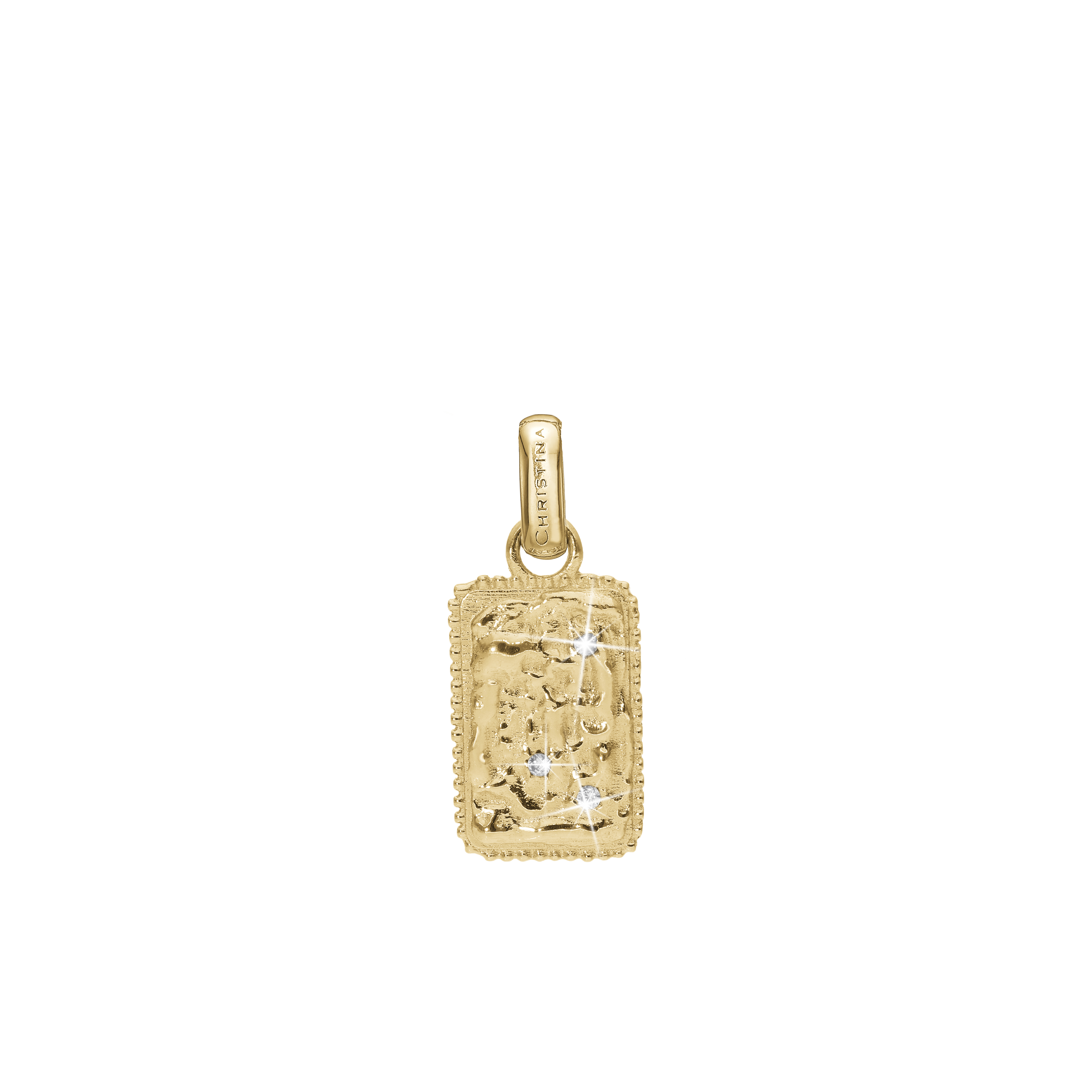 Increase quantity for Antique square Earring Pendant - Polished Gold Plated Sterling Silver with 3 white Cubic Zirkonia