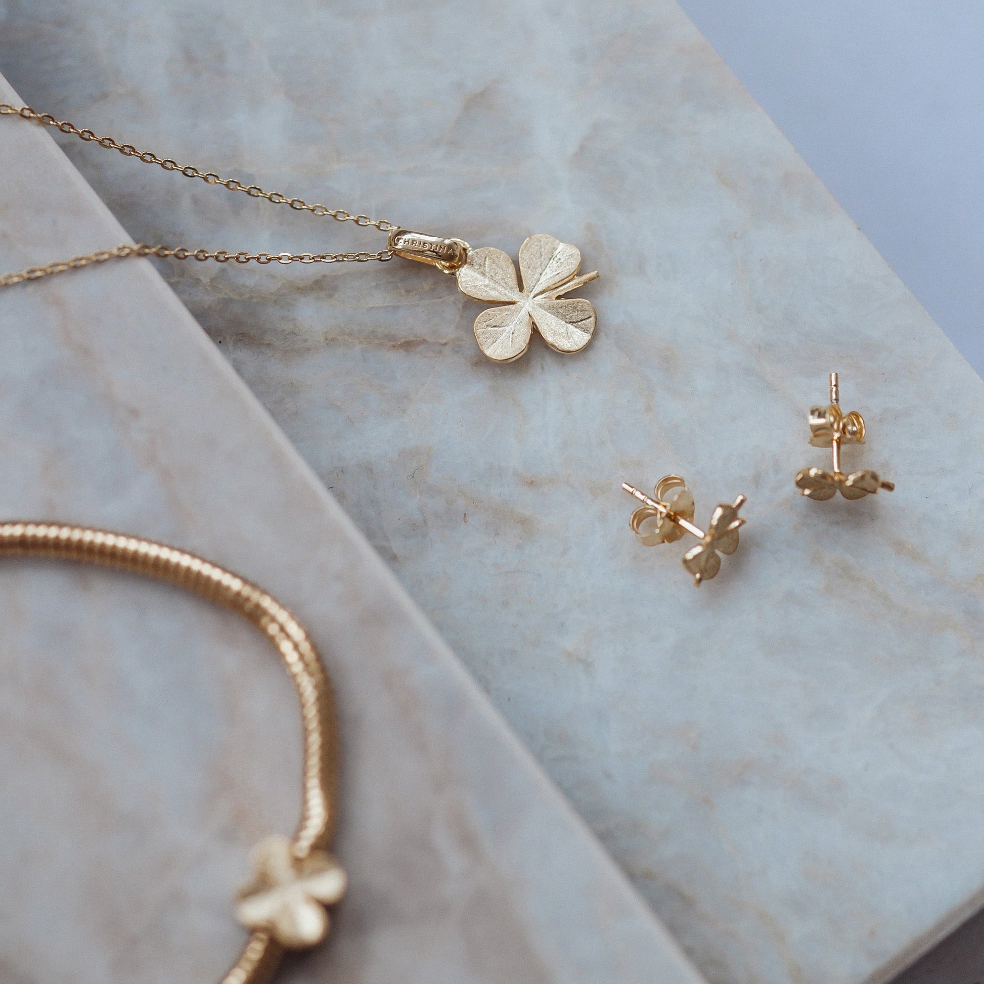 FoWatch Leaf Clover Earring Pendant - Matte Gold Plated Sterling Silver