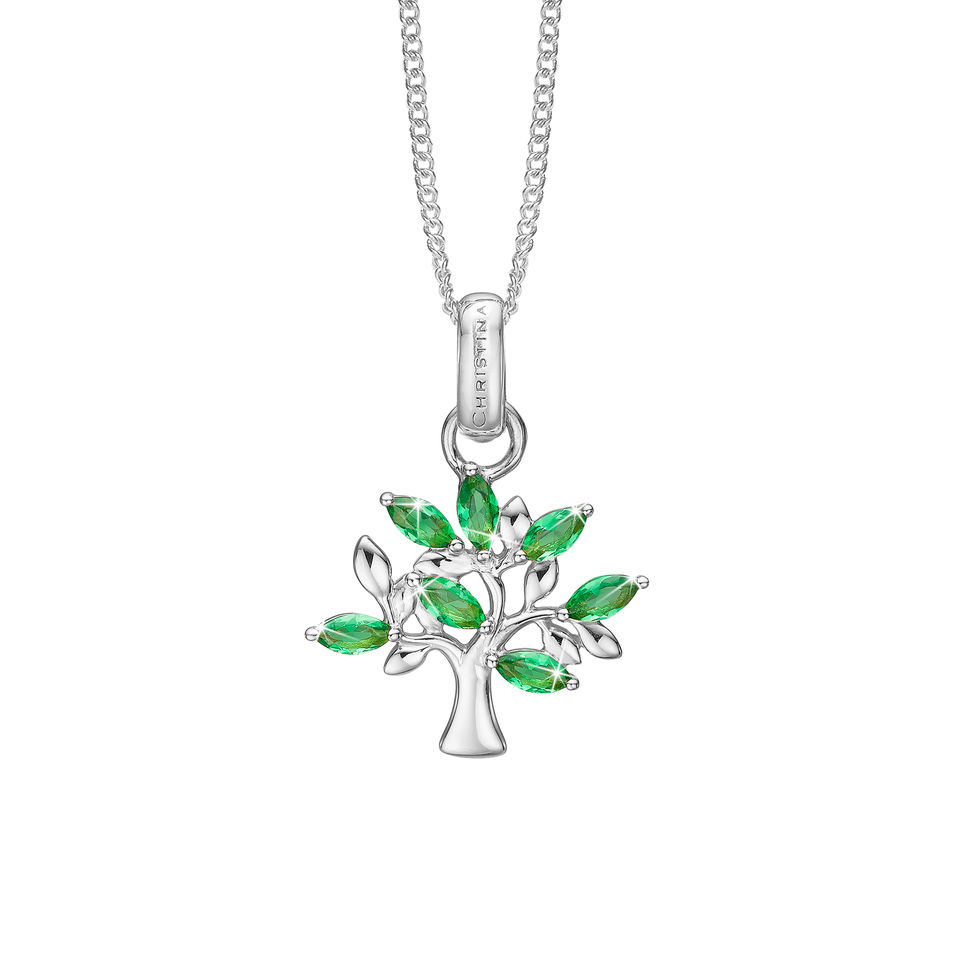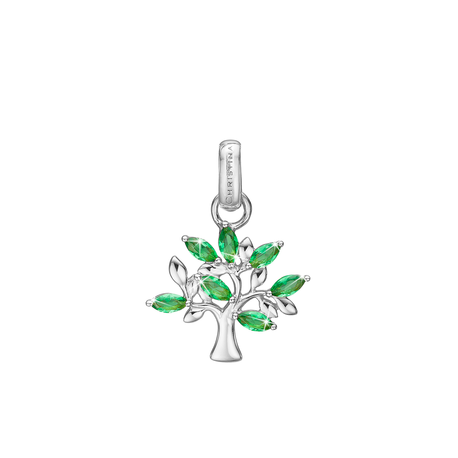 Green Family Tree Earring Pendant - Sterling Silver with 7 Greenne Cubic Zirkonia