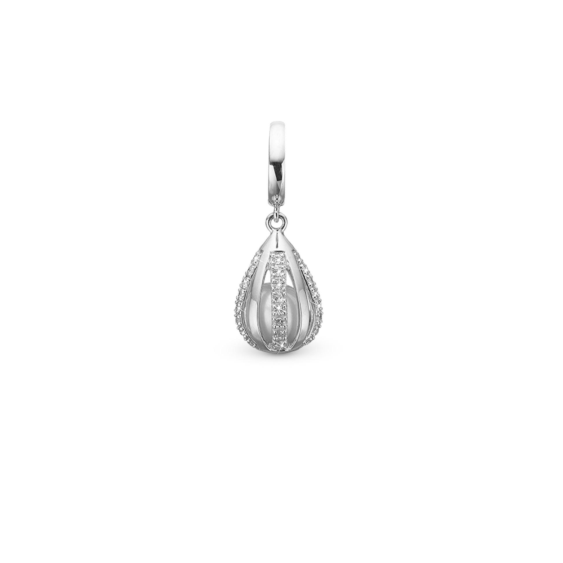 Everlasting Pearl Love Charm 6 mm for Classic Leather Bracelet - White Gold 14 karat with 29 Topas